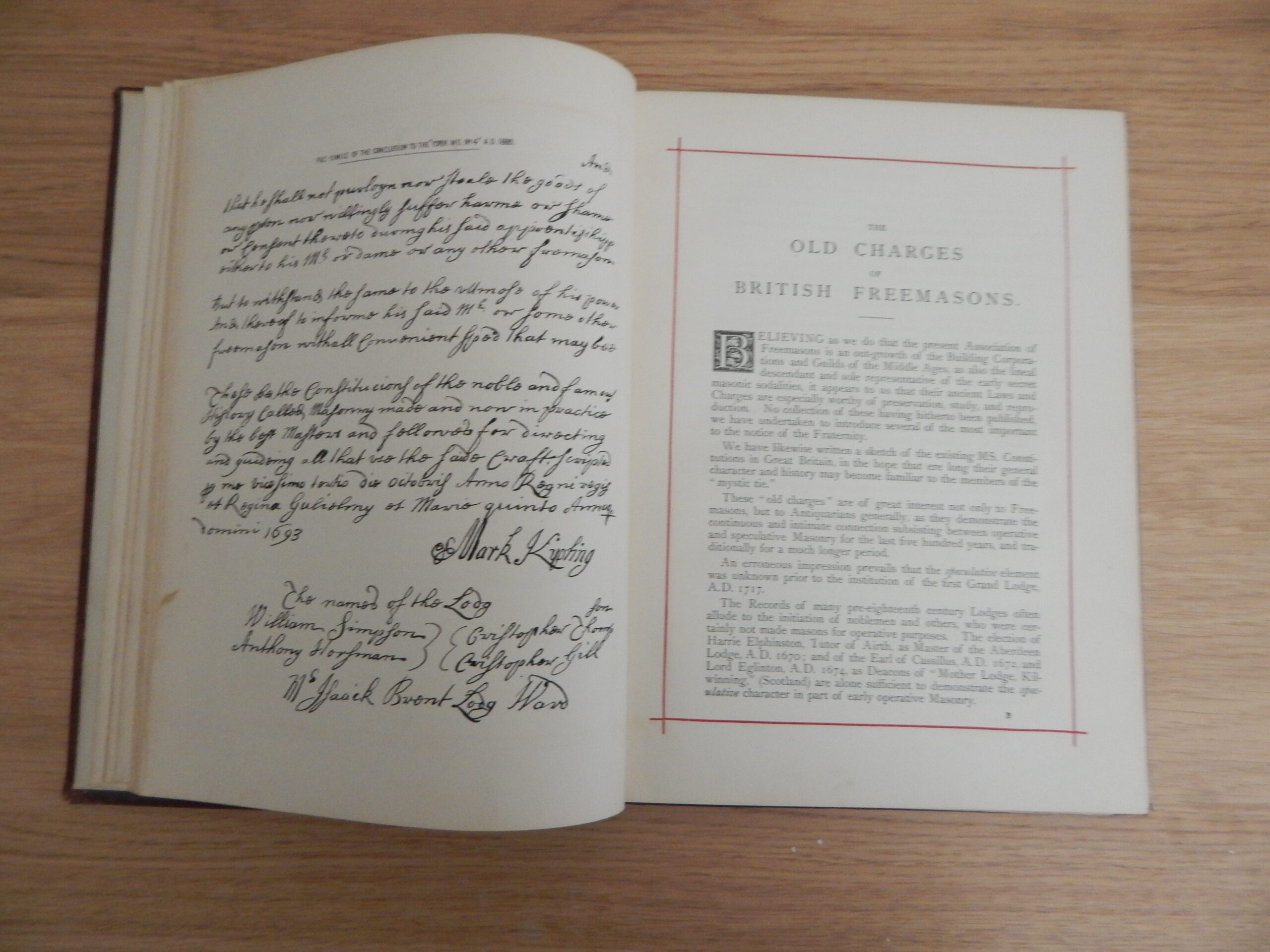 1872 Hughan’s Old Charges of British Freemasons