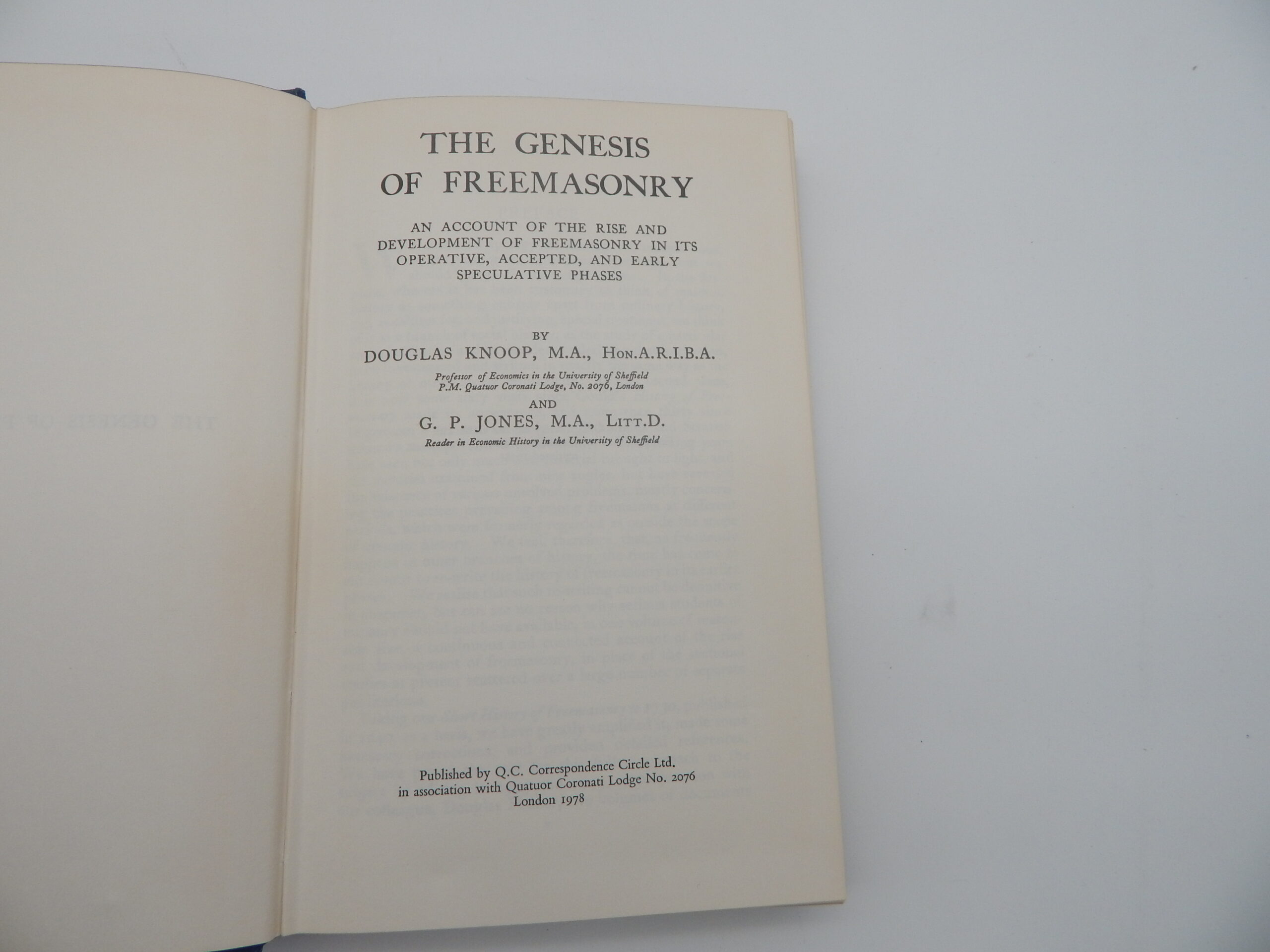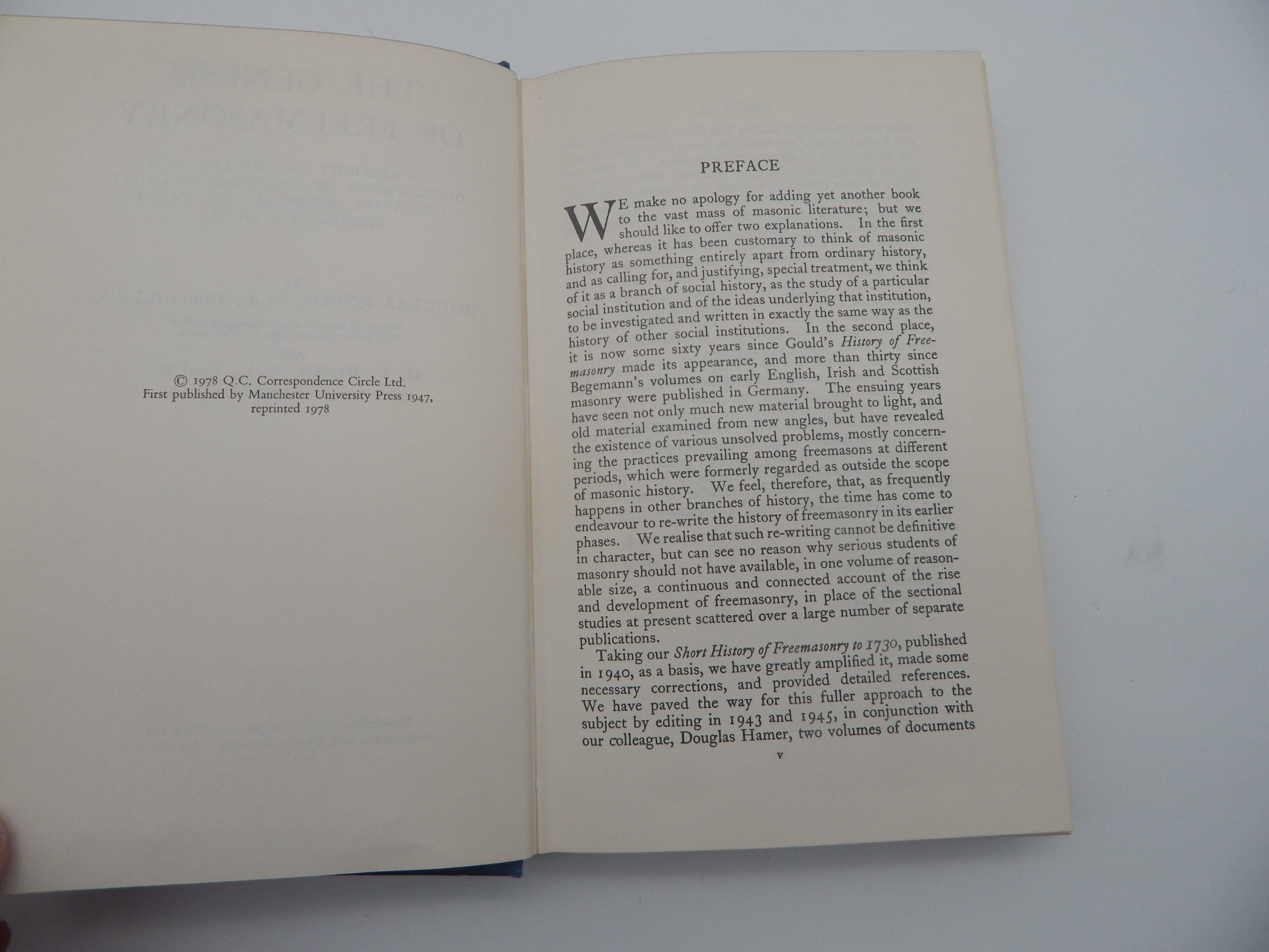 1978 The Genesis of Freemasonry by Knoop and Jones