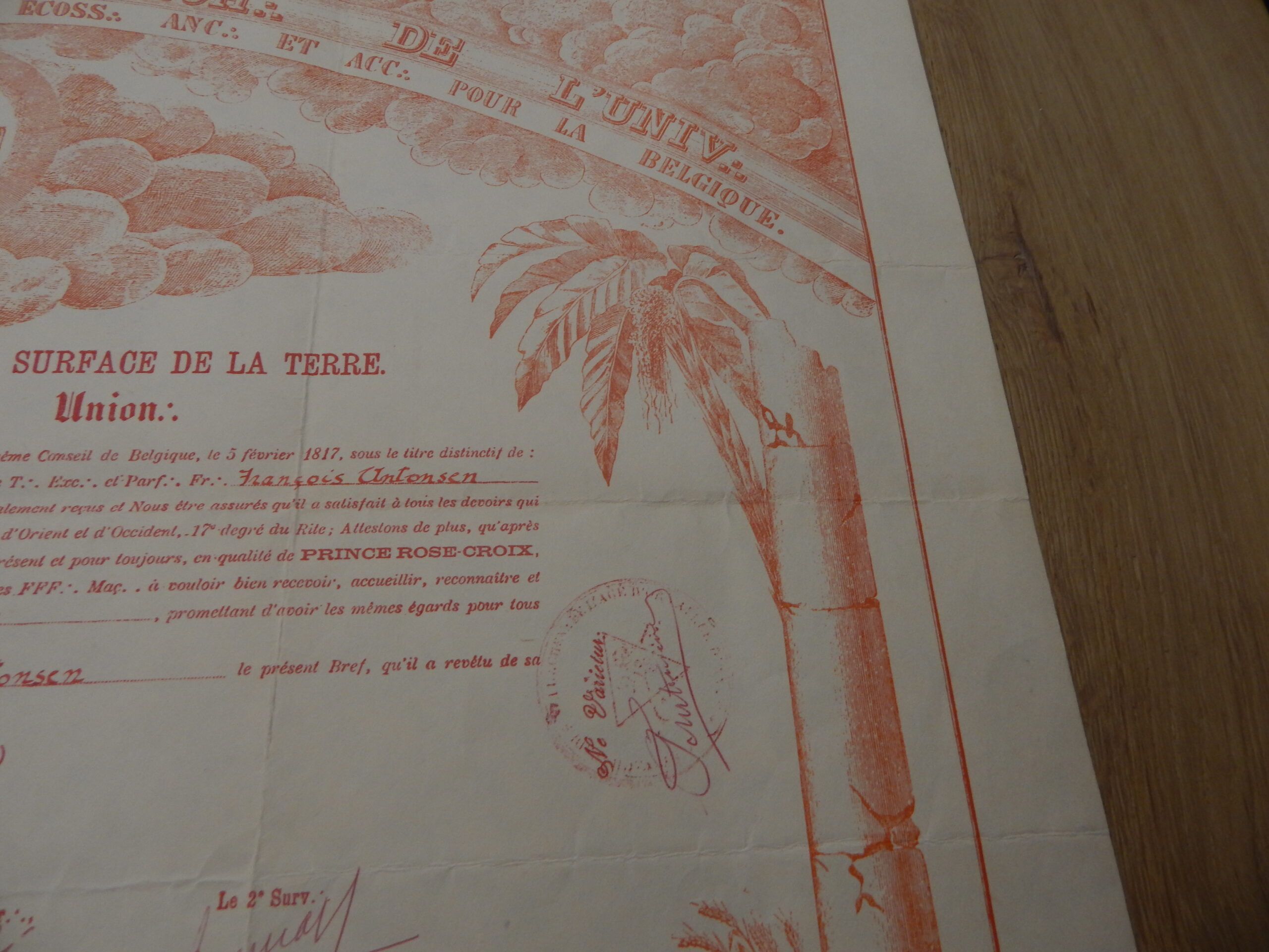 FRANCE diplome VIDE 19e siecle REAA AASR